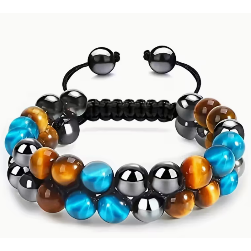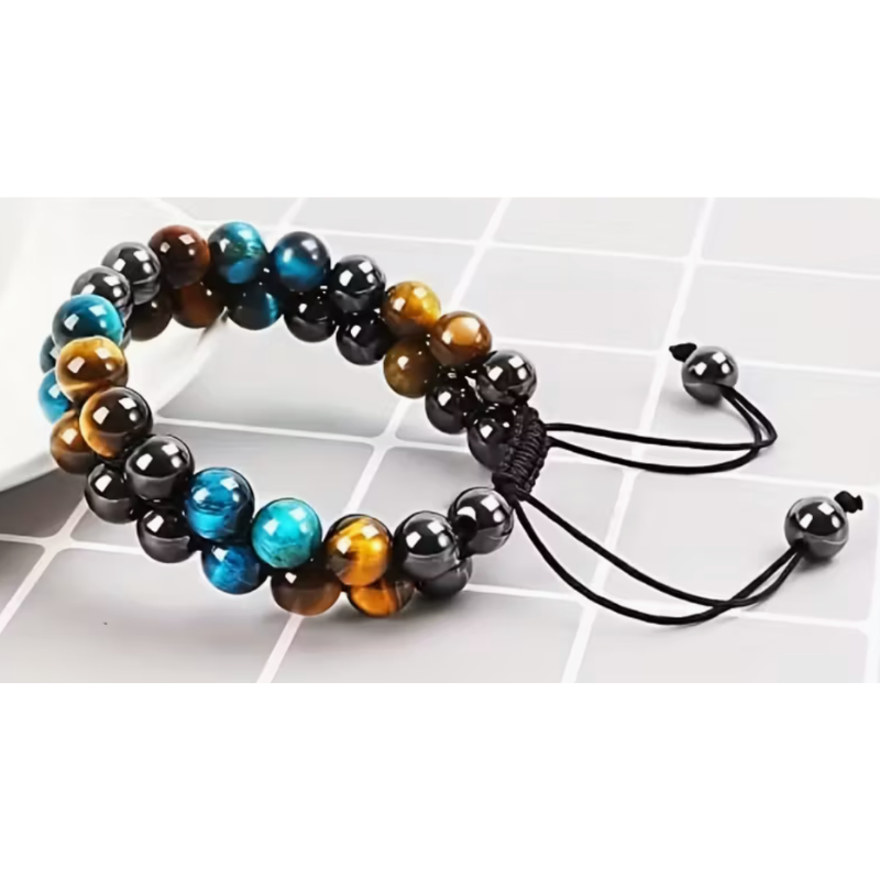 Entdecke das FUTTMI Dreifachschutz-Armband – eine kraftvolle Kombination aus Tigerauge, Hämatit und Obsidian, die dich energetisch stärkt und vor negativen Einflüssen schützt. Die 8-mm Edelsteinperlen wirken stabilisierend, fördern Klarheit und innere Ruhe. Mit seinem verstellbaren Band passt es sich jedem Handgelenk an und begleitet dich als kraftvoller Glücksbringer durch deinen Alltag.